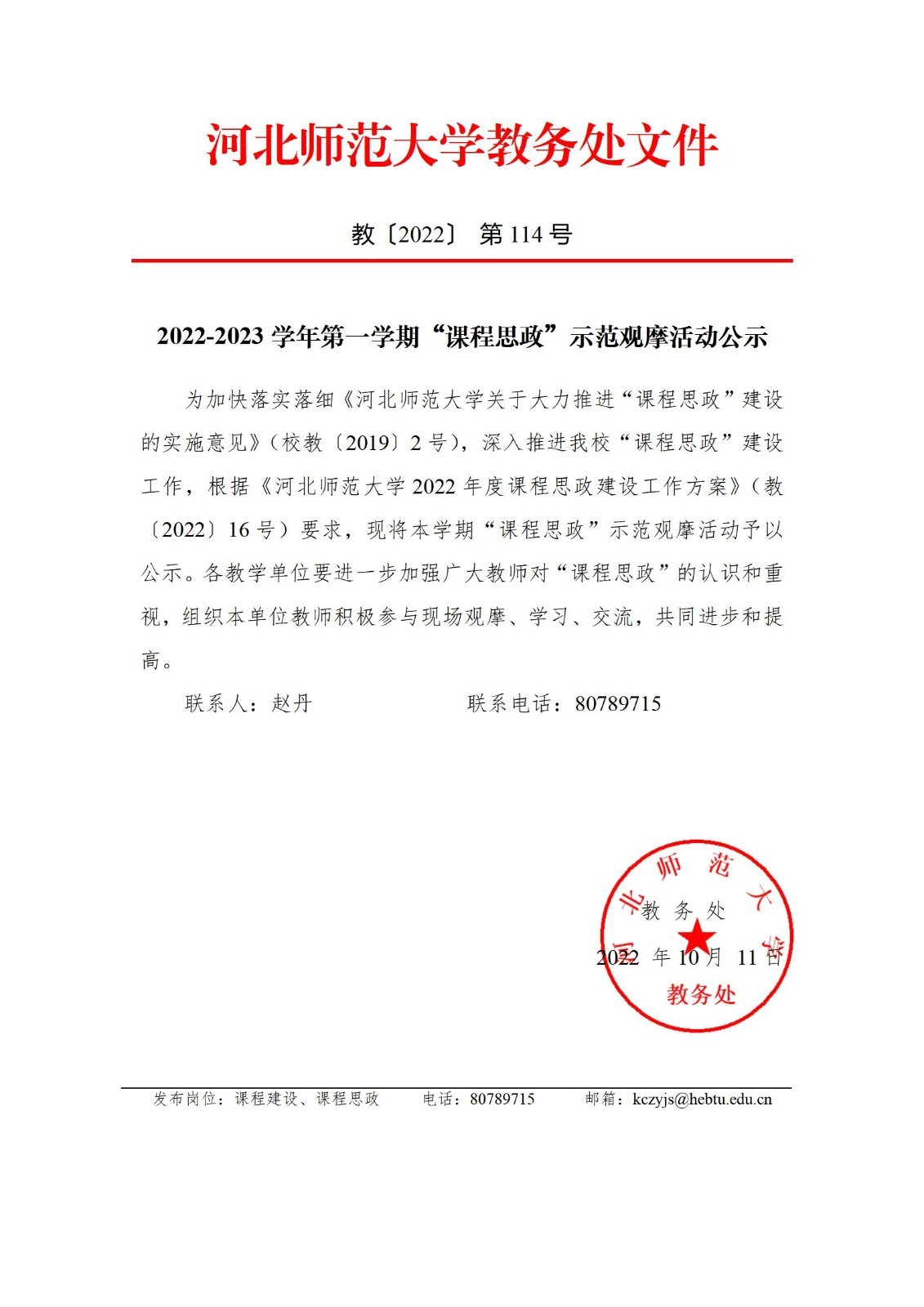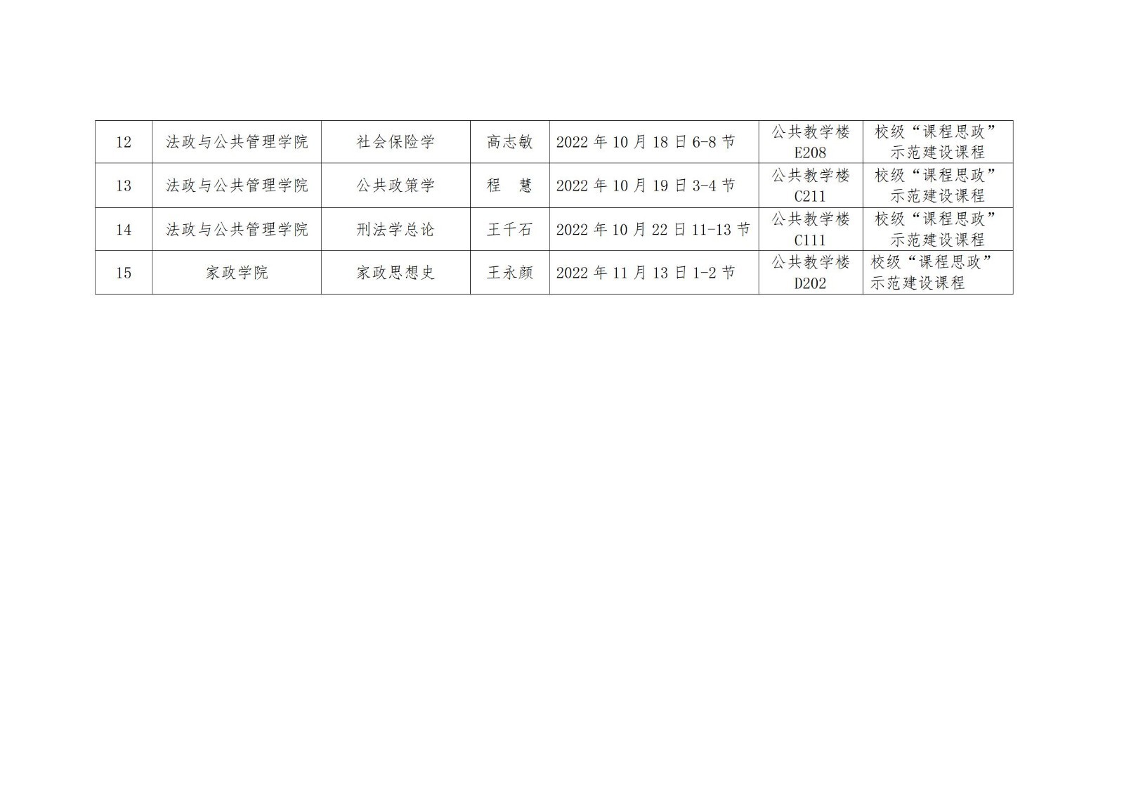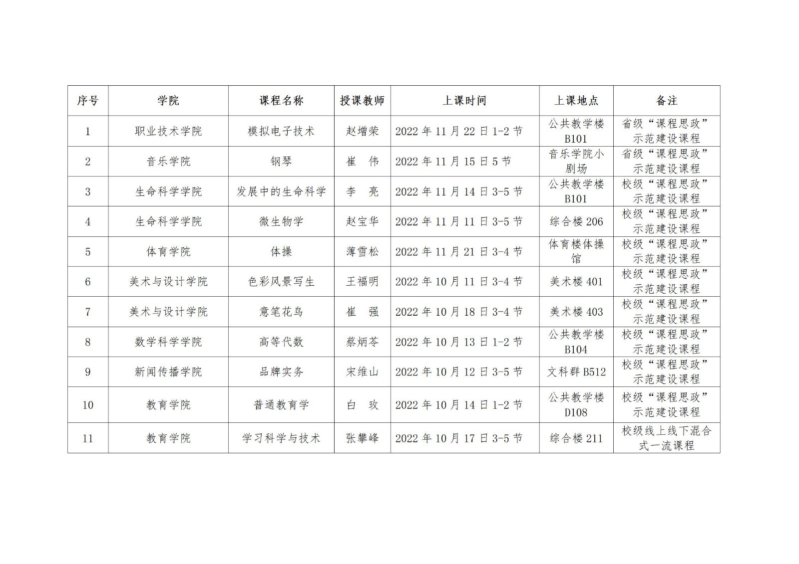 2022-2023学年第一学期“课程思政”示范观摩活动公示