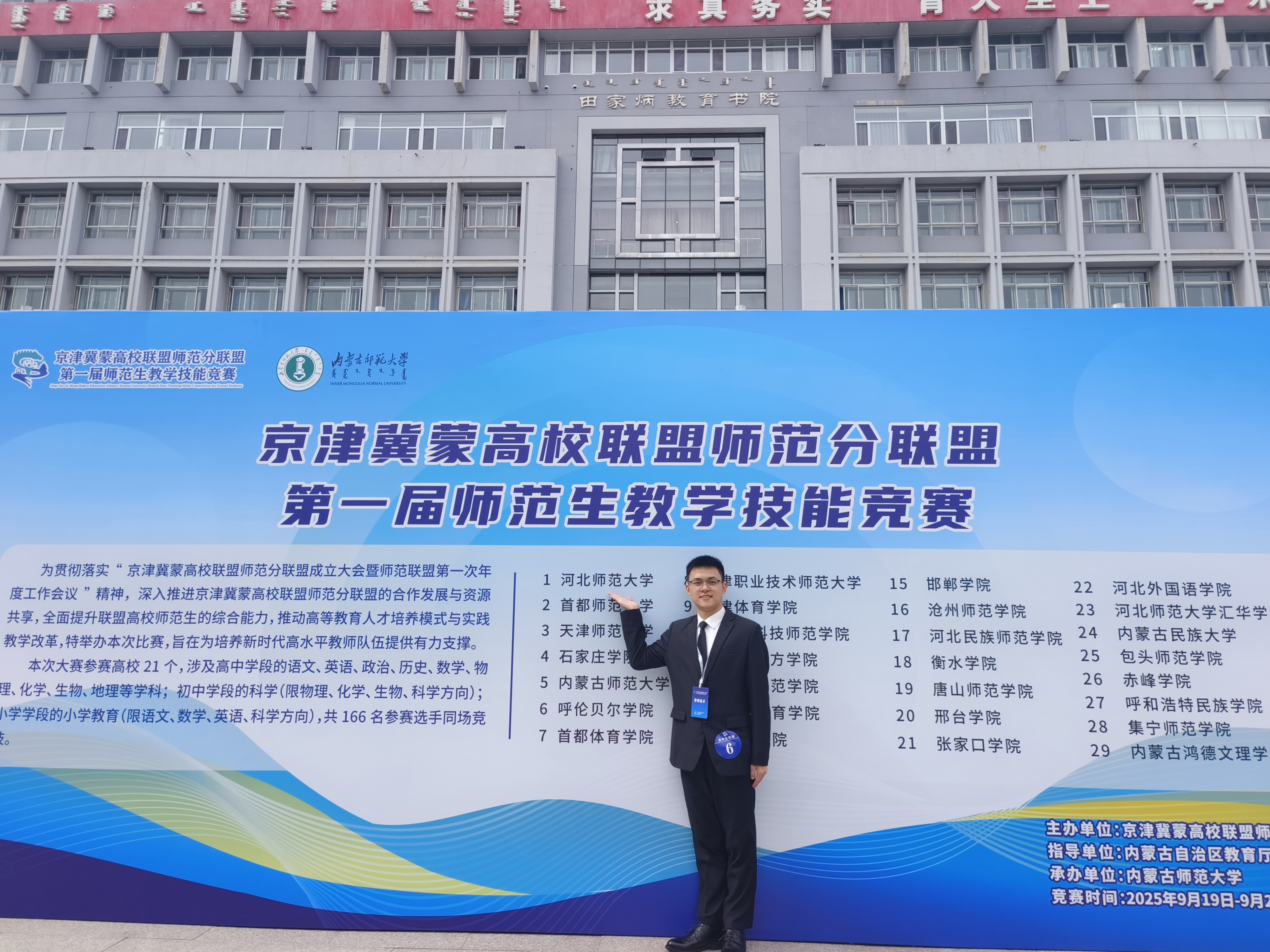 9月20日,京津冀蒙高校联盟师范分联盟第一届师范生教学技能竞赛在内蒙古师范大学举办。拷贝漫画 2022级师范生杨明翔凭借扎实的教学基础与出色的临场表现斩获佳绩,荣获高中生物组一等奖!